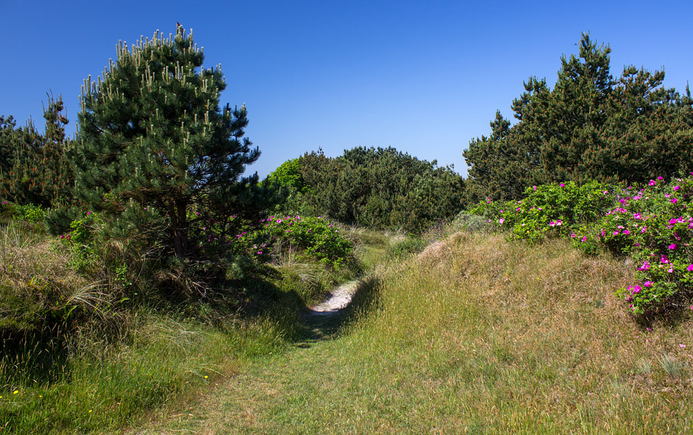 Auf diesen Dünenwegen trifft man im Hochsommer bei schönem Wetter keine Menschenseele. Dies kann auch mal sehr entspannend sein, es muß nicht immer Strand und Trubel sein.