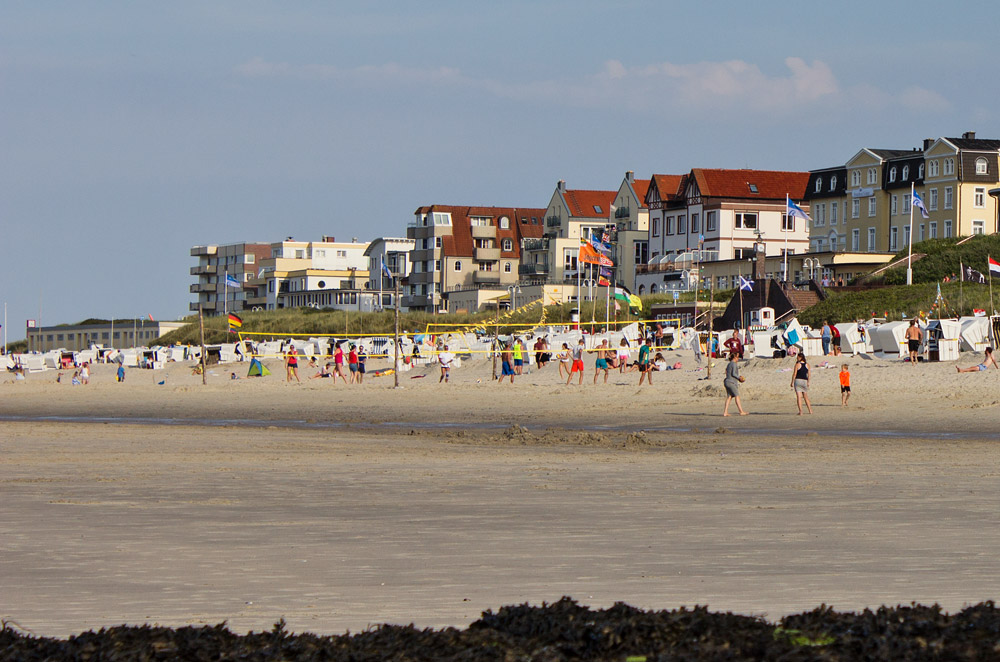 Im Bereich des Westfeldes befinden sich seit vielen Jahren zwei Beachvolleyball-Netze, die auch um zwanzig nach sechs noch rege genutzt werden.