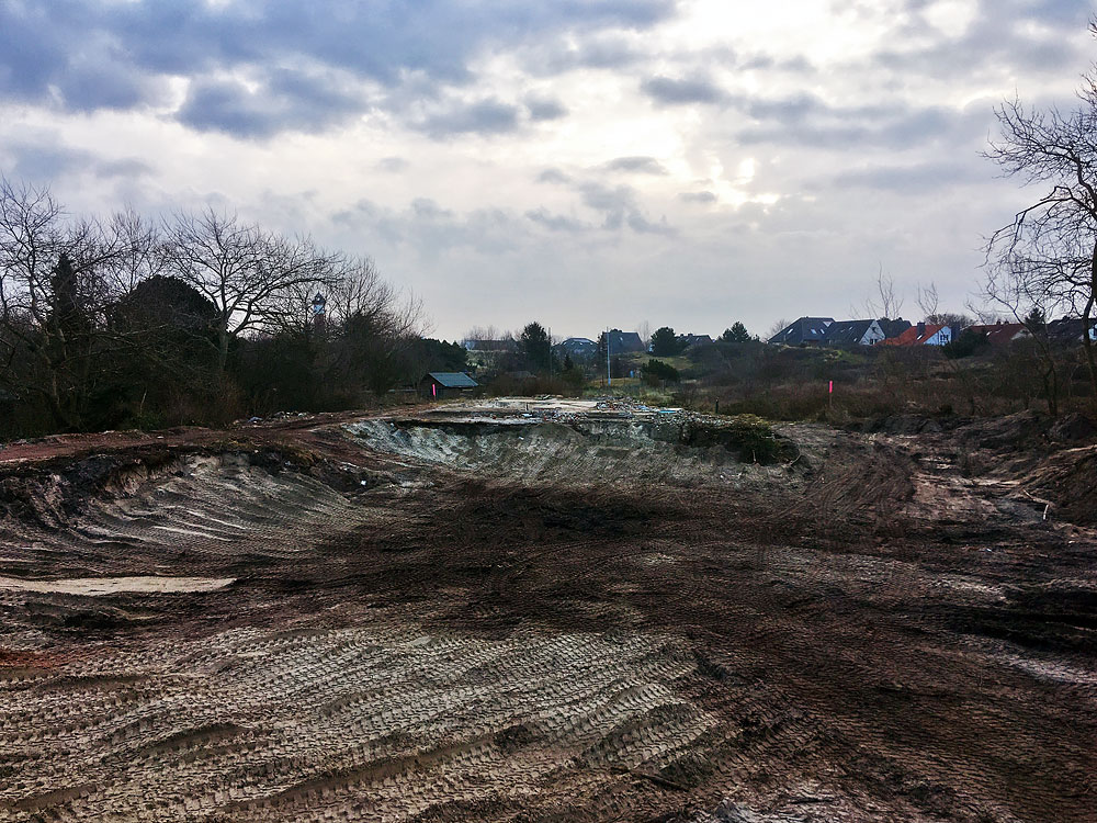 Die Gebäude im »Erlengrund« westlich der »Osterdünen« wurden Anfang 2018 abgerissen. Zurück bleibt eine planierte Fläche und etwas Schutt, der mit Sicherheit ebenfalls noch entfernt wird.