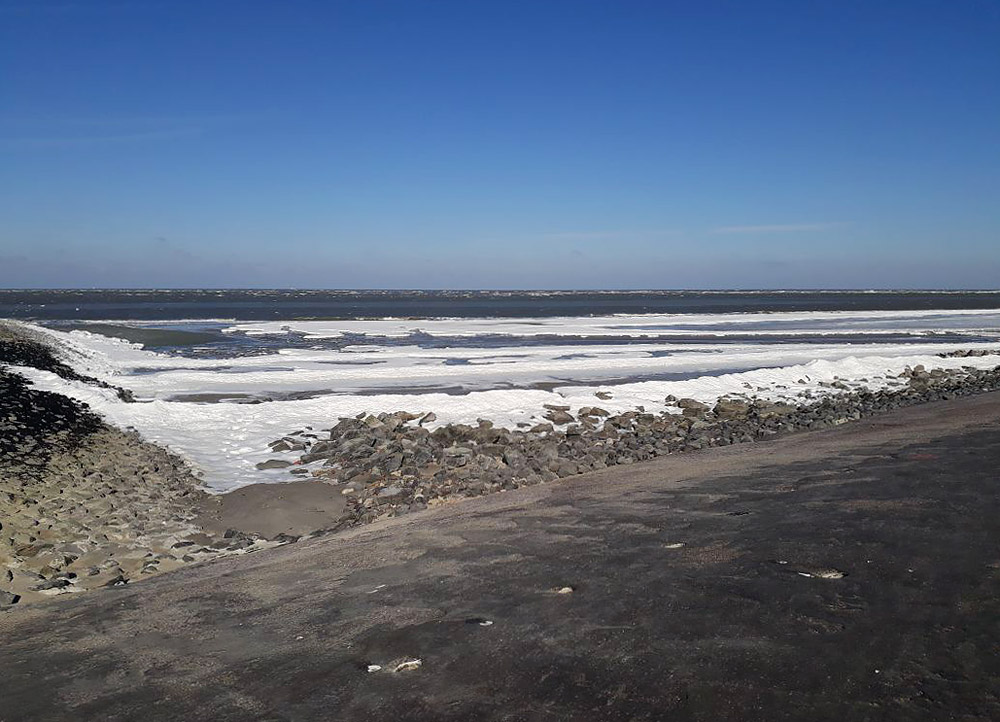 Zwei, drei eisig kalte Nächte von bis zu –10 °C reichten Anfang März 2018, um größere Mengen an Meereis am Strand entstehen zu lassen.