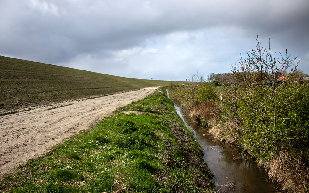 Der Dorfgrodendeich wurde in diesem Bereich erst im Vorjahr erhöht, die Grasnarbe ist noch nicht geschlossen und auch der Deichverteidigungsweg ist lediglich ein Sandweg. Heute sieht es hier schon wieder ganz anders aus, denn die Bauarbeiten sind mittlerweile abgeschlossen.