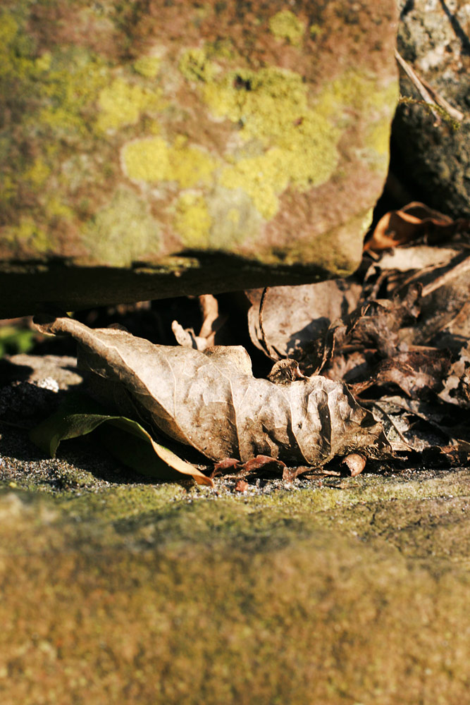 ‹ Ein paar Blätter aus dem vorigen Herbst haben sich zwischen den breiten Steinfugen im »Steingarten« gesammelt.