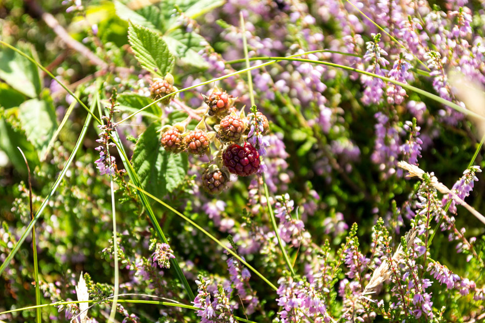 Ganz reif sind diese hübsch ins Heidekraut eingebetteten Brombeeren noch nicht.