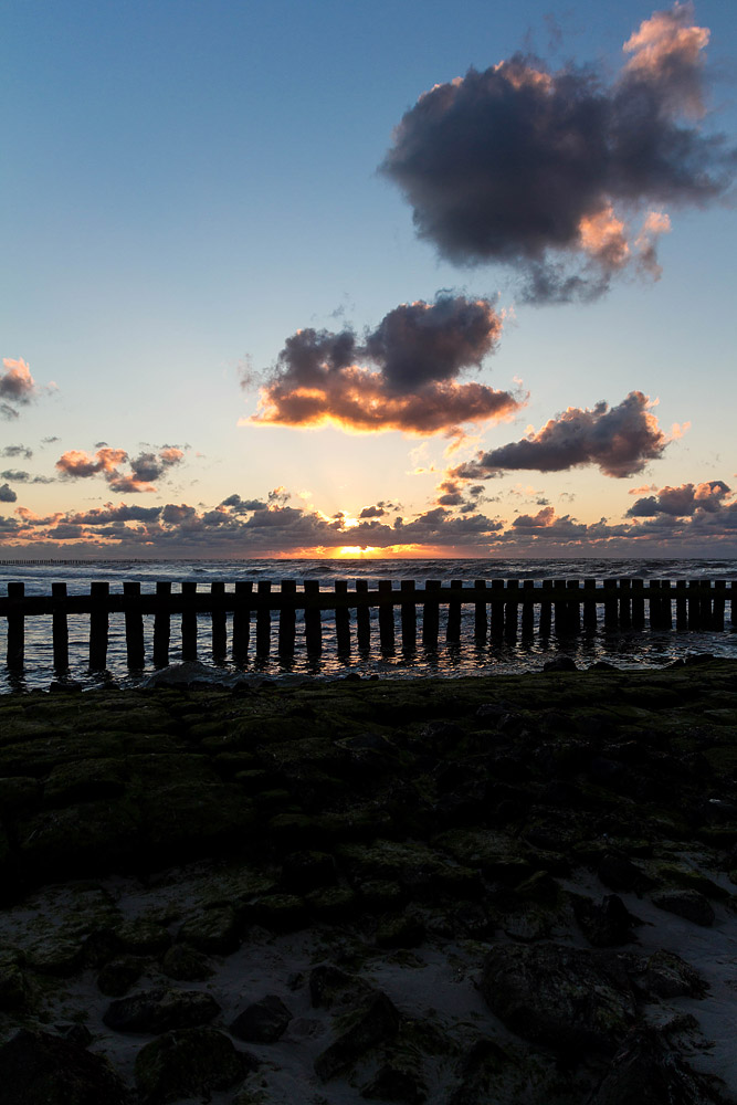 ‹ Vorn die Buhne »M«, deren Wirkung durch eine parallel verlaufende Pfahlbuhne verstärkt wird.
