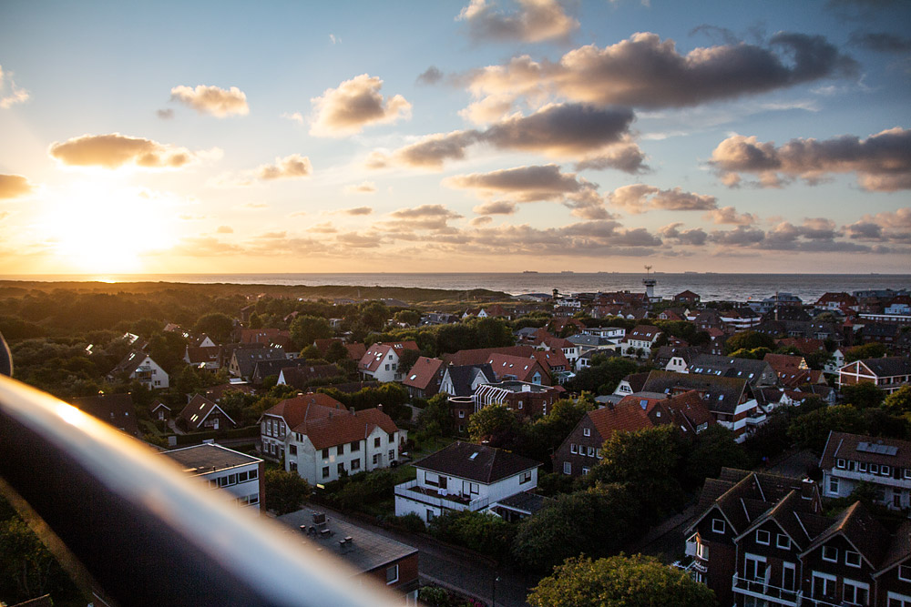 Die Sonne steht bereits recht tief und taucht das Dorf in ein gedämpftes, goldenes Licht. Unten sind die Häuser des nordwestlichen Ortes zu sehen, beispielsweise die der Zedeliusstraße, der Schulstraße oder der Friesenstraße.