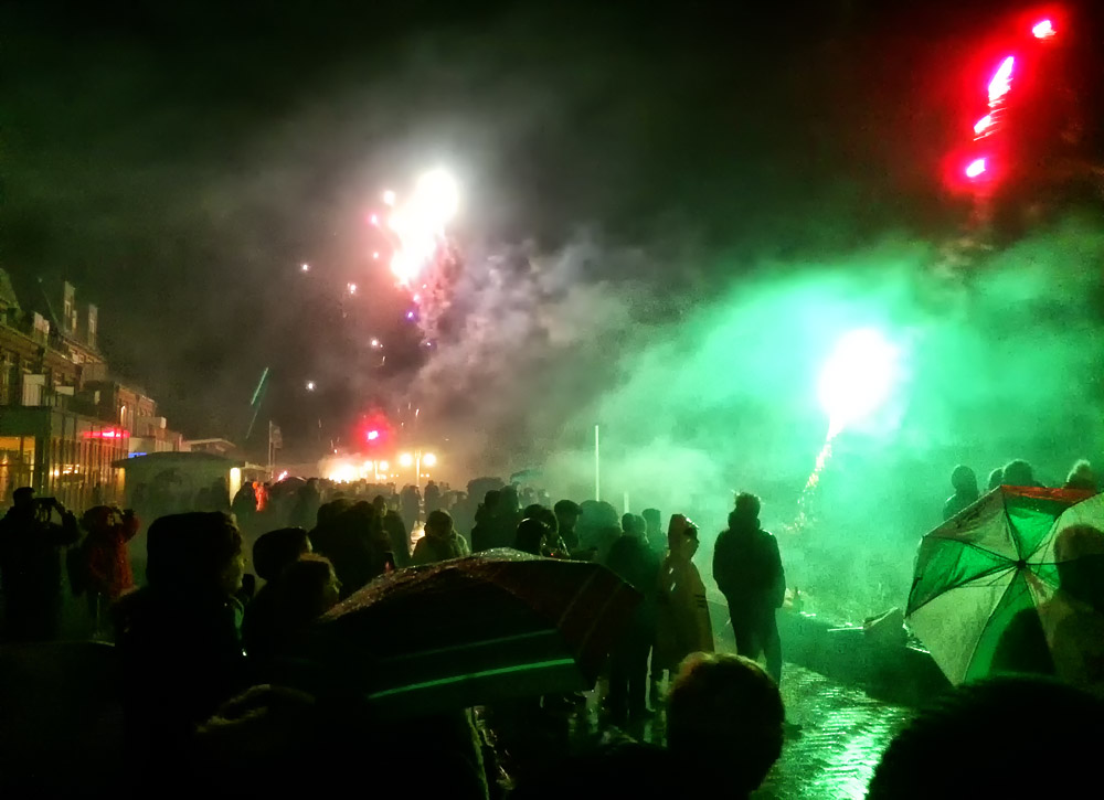 Silvester auf Wangerooge, es knallt und zischt allerorten auf der Strandpromenade.