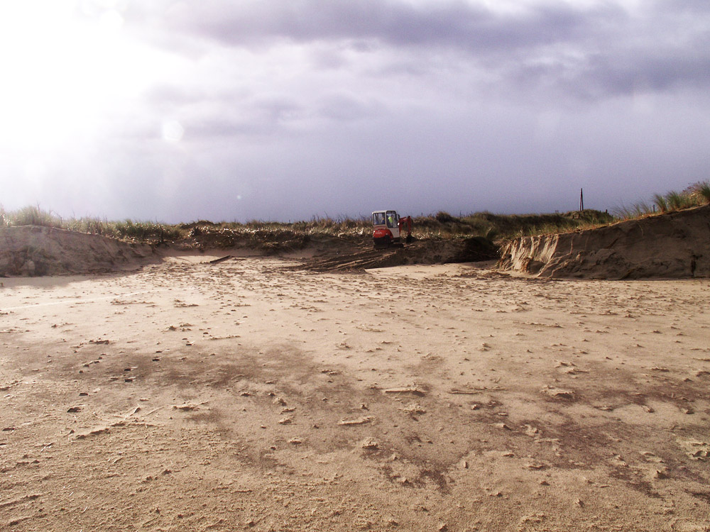 Hier, etwas weiter östlich, hat die Sturmflut nur kleine Schäden an der Dünenkette verursacht. Doch daß in diesem Bereich der Insel überhaupt Schäden vorzuweisen waren, war ein bis dato fast einmaliger Vorgang und zeigt die Wucht der Allerheiligenflut 2006.