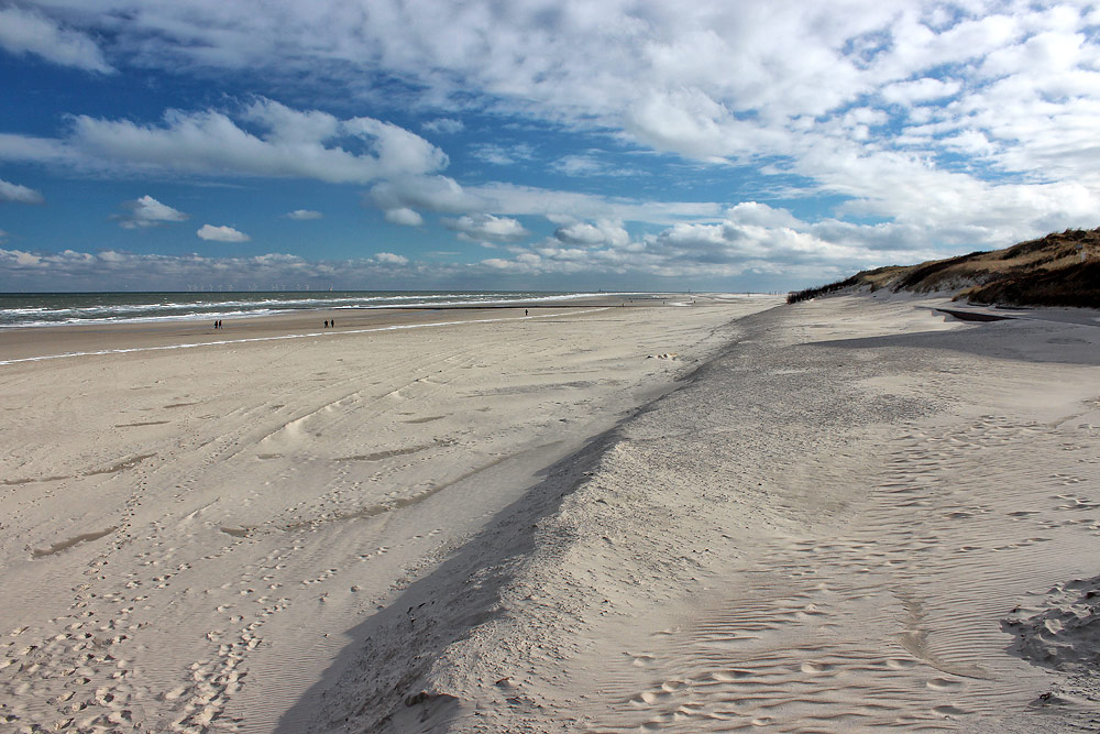 Hier sehen wir den Strand im Bereich des Ostfeldes, im Winter stehen dort natürlich keine Strandkörbe, dafür gibt es aber nach der Sturmflutsaison eine kleine Abbruchkante.