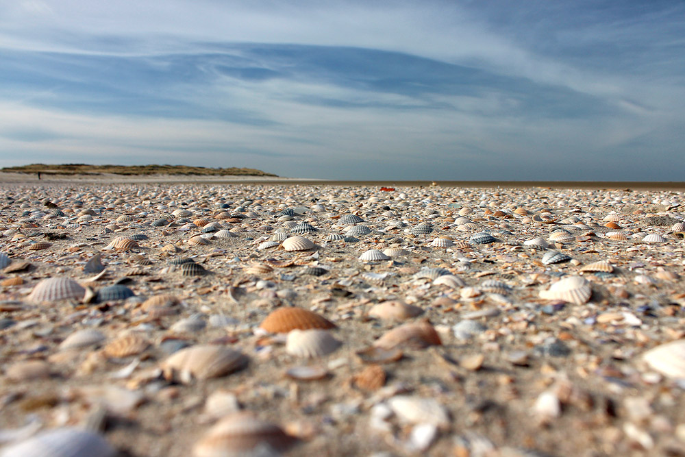 Abertausende von Muscheln, vor allem Herzmuscheln, liegen dicht an dicht in manchen Bereichen des Oststrandes.