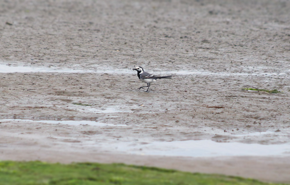 Nicht nur an Bachufern und im Freigelände sucht die Bachstelze (Motacilla alba) nach Insekten und anderen Kleintieren, auch auf dem Wattboden ist sie zeitweise bei der Nahrungssuche anzutreffen.