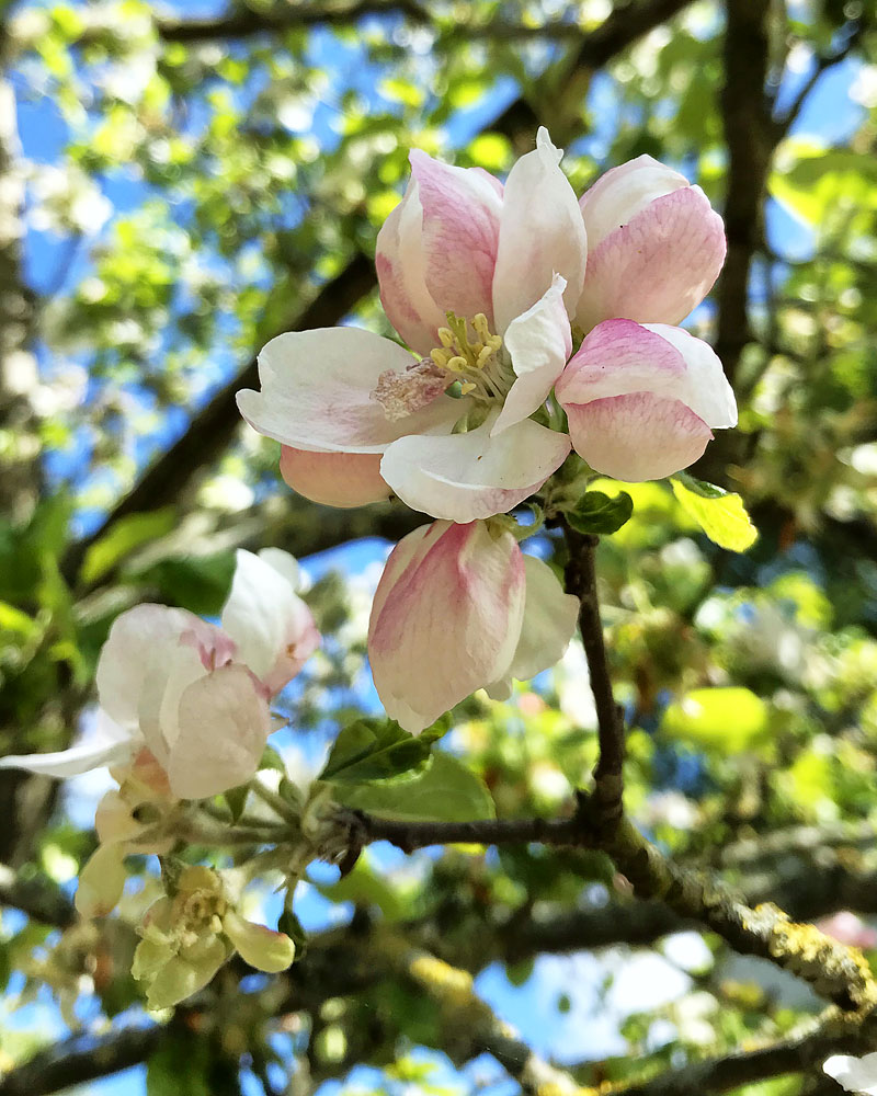 Auf Wangerooge entwickelt sich die Natur im Frühling in der Regel etwas später, daher stehen einige Apfelbäume auch Mitte Juni noch in voller Blüte.