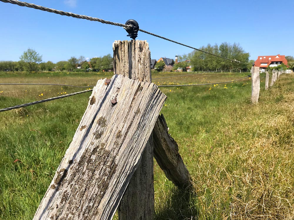 Damit die Pferde nicht auf einmal im Dorf oder Watt stehen, ist um die Weide umzu ein Elektrozaun gezogen.