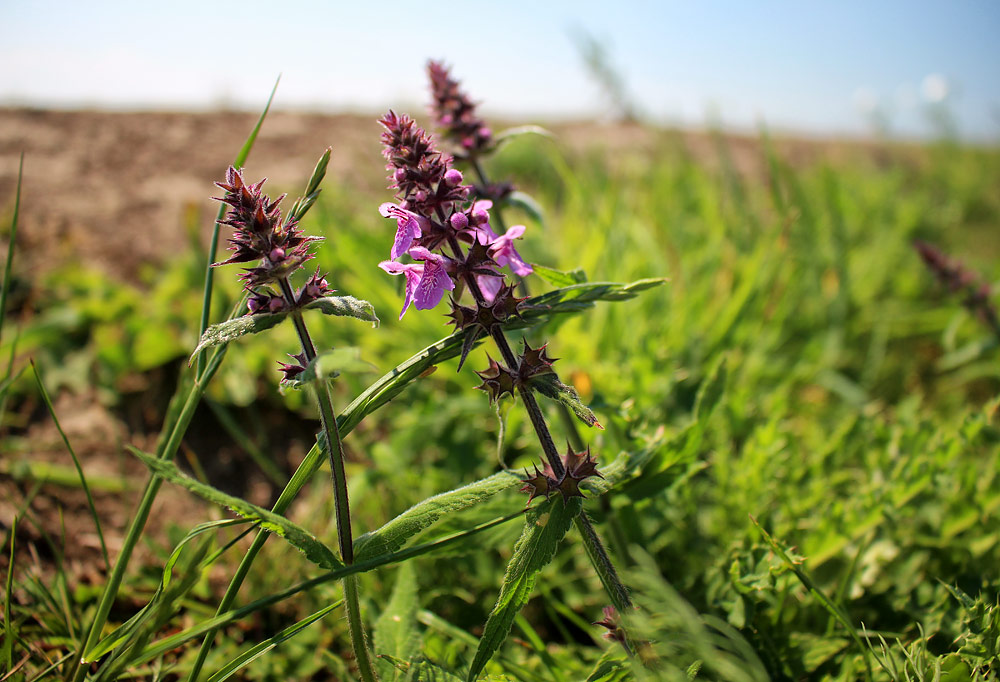 An einigen Stellen ist auf dem kürzlich erhöhten Dorfgrodendeich auch der im Sommer rosa blühende Sumpf-Ziest anzutreffen.