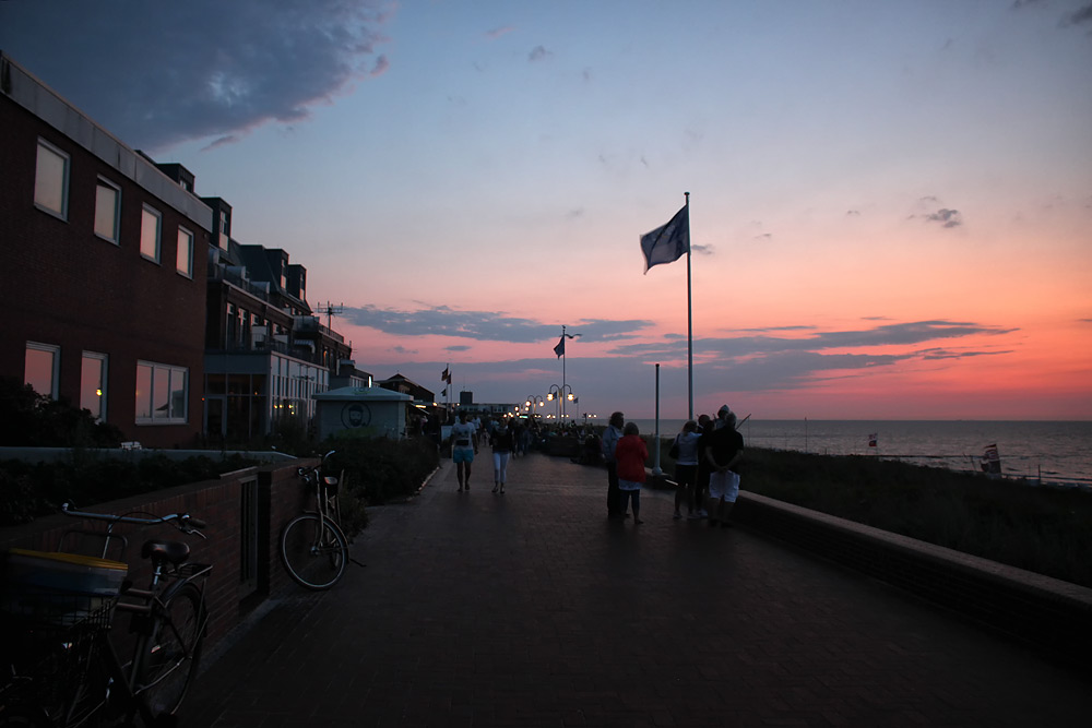 Dämmerung an der Promenade westlich des Puddings genau 16 Minuten nach Sonnenuntergang.