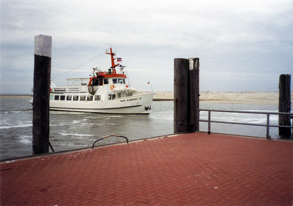 Am Westanleger dreht gerade die MS Jens Albrecht III, die bis 2008 noch zur Reederei Albrecht gehörte und damit eine Alternative zur Anreise per DB-Schiff bot. Mittlerweile gehört das 1935 gebaute Schiff der Reederei Norden-Frisia, fährt aber für die Deutsche Bahn.