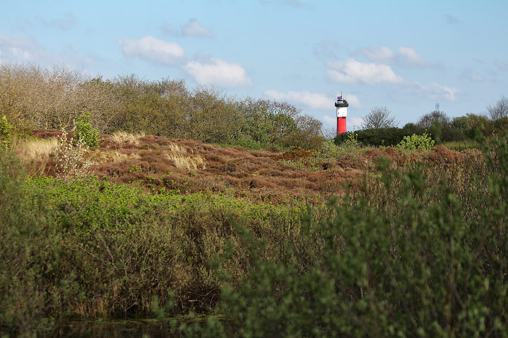 Heidedünen westlich des Dorfes mit den Eiskuhlen (vorn). Im Hintergrund der Alte Leuchtturm.