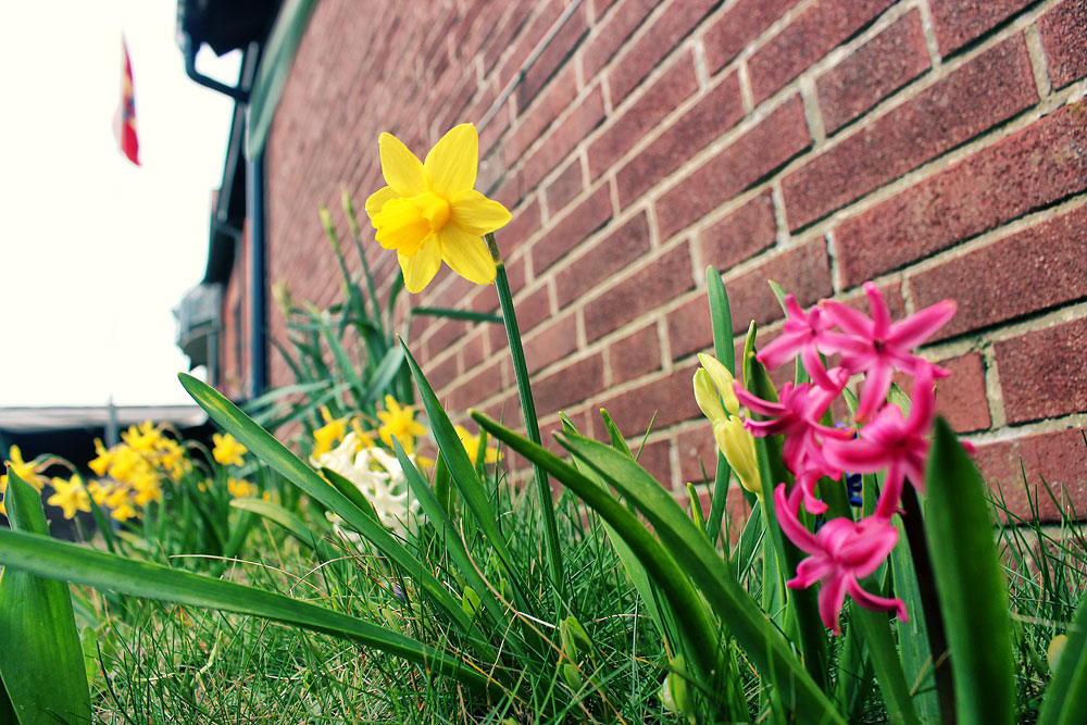Passend zur Osterzeit geben diese Frühlingsblüher – Narzissen und Hyazinthen – im Vorgarten ein farbenfrohes Bild ab.