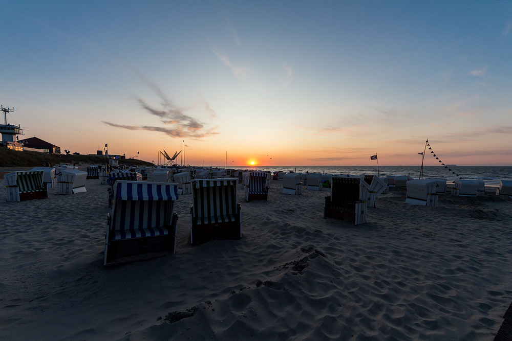 Hauptstrand in der Abenddämmerung, kurz vor Sonnenuntergang.