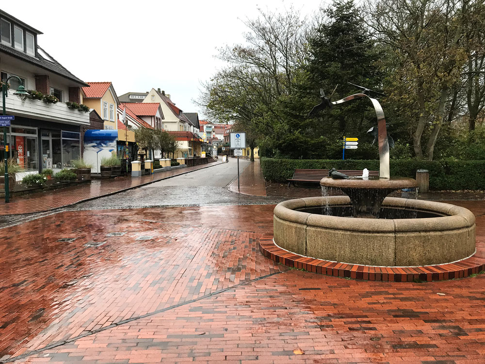 Bei diesem Wetter jagt man keinen Hund vor die Tür, zum Brötchen holen war der Bildautor dennoch draußen. Rechts erkennt man den Brunnen, welcher sich auf dem Appellplatz befindet, dahinter einige Bäume des Rosengartens. Links die Zedeliusstraße mit dem 1804-Store, Brotway und der Bäckerei Bolte.