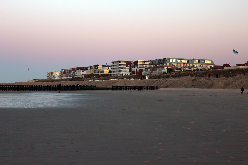 Vor genau fünf Minuten ist die Sonne untergegangen und ganz langsam bricht Dunkelheit über die Insel herein. Bei dem grauen Bereich links von den Gebäuden handelt es sich um den sogenannten Erdschattenbogen, der sich nun weiter und weiter über den Dämmerungshimmel ausbreiten wird.
