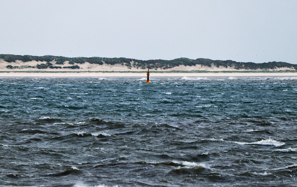 Diese Kardinaltonne im Seegatt zwischen Wangerooge und Spiekeroog markiert das Ende der Wangerooger Buhne »H«. Östlich dieser Tonne ist die Gefahr hoch, auf der Buhne aufzusetzen, daher sollte man hier tunlichst das offizielle Fahrwasser nutzen.