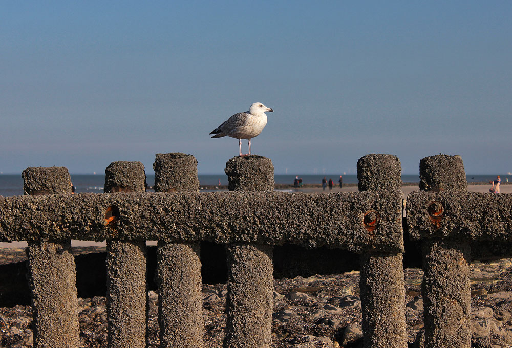 Silbermöwen lieben es, oben auf den Pfählen der Pfahlbuhnen Platz zu nehmen.