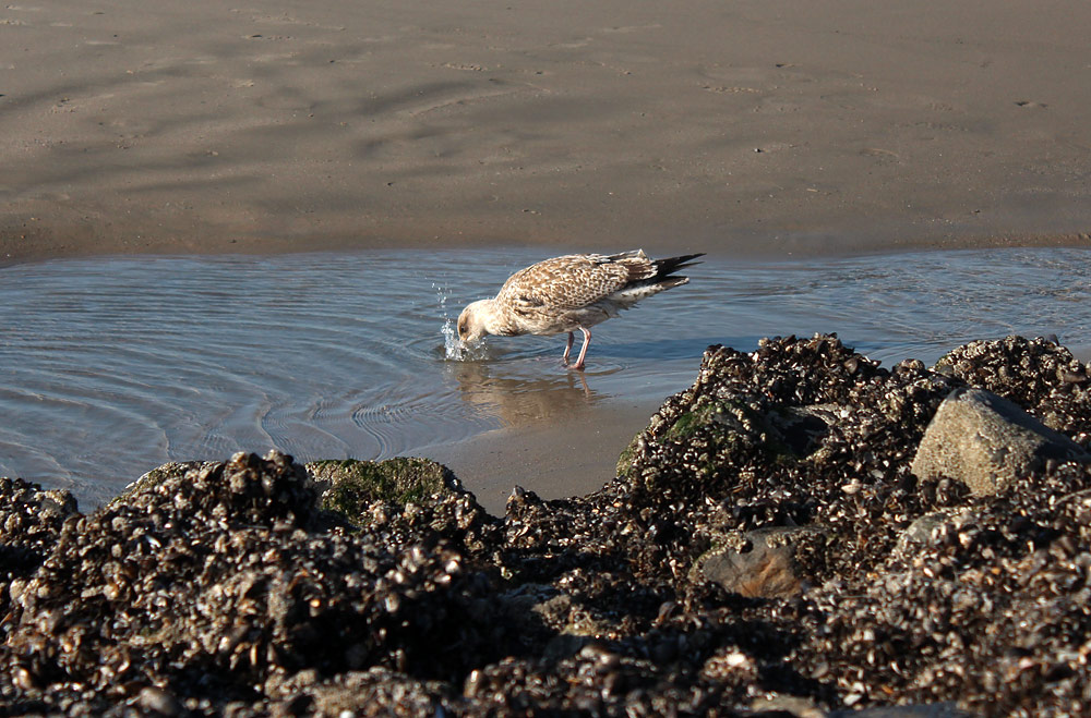 Mit Schwung geht's mit dem Schnabel in den Priel.