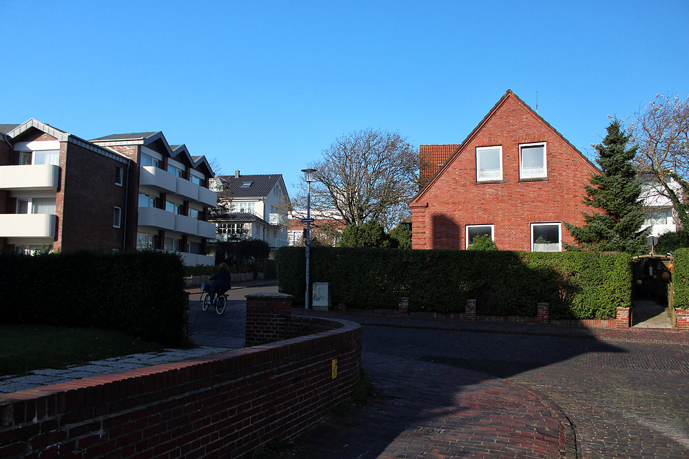 An dieser Stelle treffen die Rösingstraße sowie die Westingstraße auf die quer verlaufende Charlottenstraße. Radfahrer auf dem Weg in Richtung Strandpromenade müssen hier einen eleganten Bogen fahren.