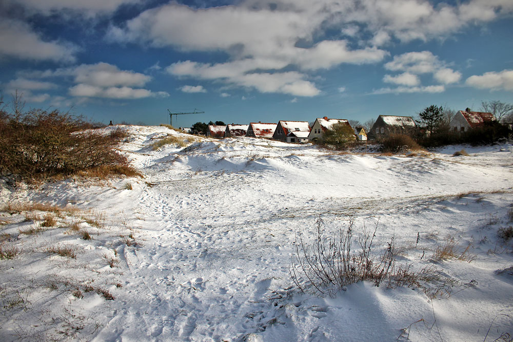 Spaziergang durch das verschneite Dünengelände nördlich der Siedlerstraße.