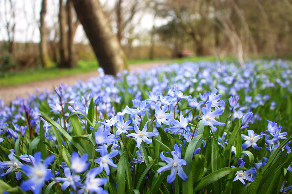 Ein Teppich aus Sternhyazinthen verbreitet Frühlingsstimmung im Teichgarten.