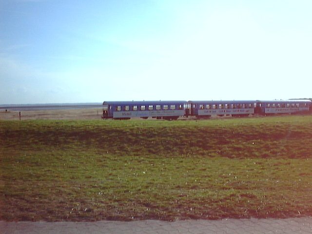 Man sieht hier gerade die Inselbahn vorbeifahren