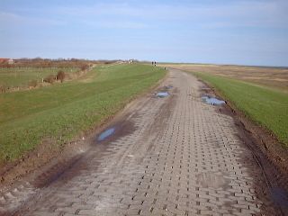 zum ersten Mal vom Deich aus das Dorf.