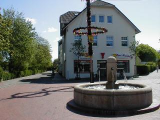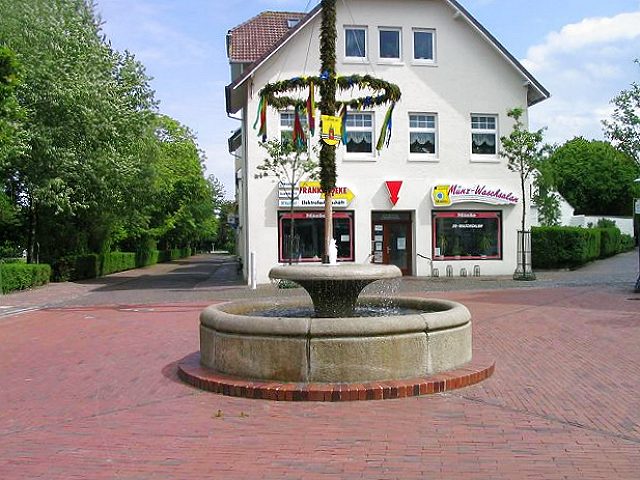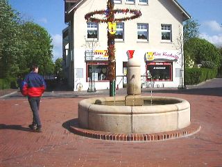 Unser ganz neuer Brunnen. Im Hintergrund sehen Sie übrigens den Maibaum