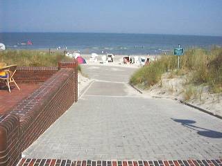 Dort unten sieht man einige Strandkörbe, Guidos Bungee-Anlage