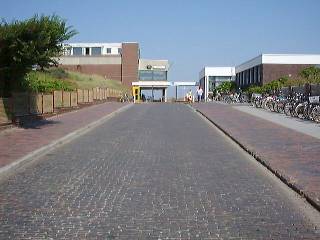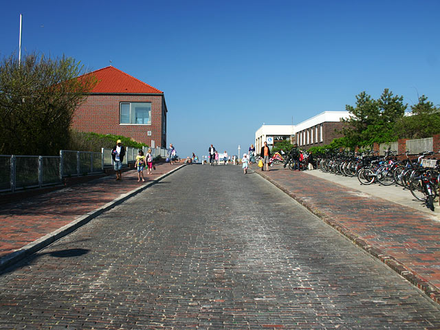 Geradeaus gehen Sie auf die Strandpromenade zu.