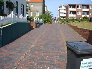 Dort geht es – an der Mülltonne vorbei – in Richtung Strand.