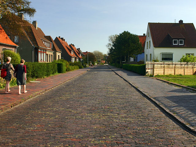 Zwei Personen auf dem nördlichen Bürgersteig der »Charlottenstraße«.