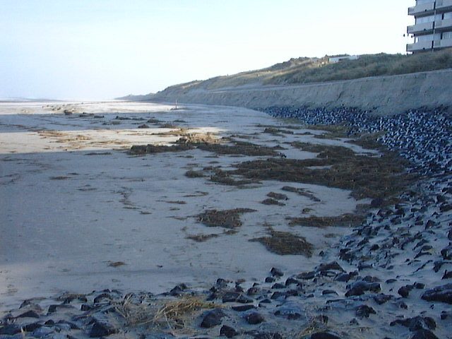 Und wieder sieht man die bei den Winterstürmen freigelegte Strandmauer.