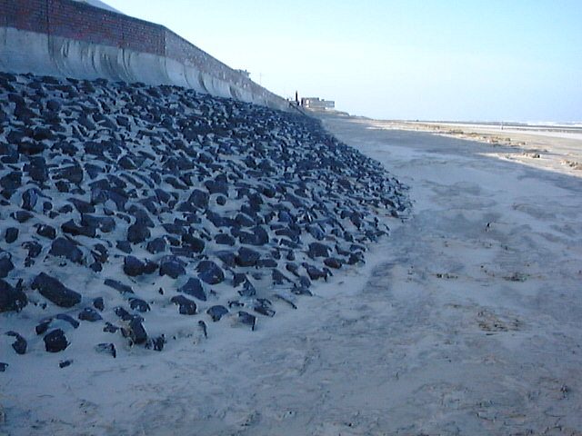 Die Strandmauer bei einem Blick nach Westen.