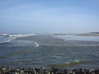 Vor uns ein Priel, der allerdings nicht besonders tief ist.