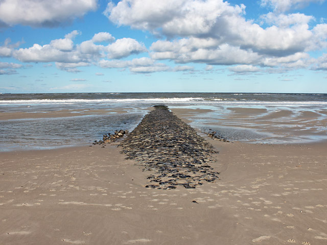 in denen die Buhne kaum aus dem Sand hinausschaut.