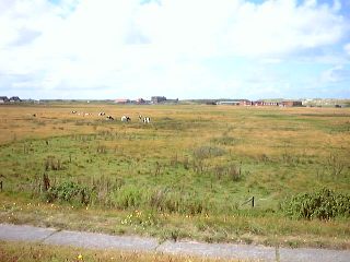 Dort auf der Weide grasen normalerweise Tiere, zur Zeit aber leider nicht.