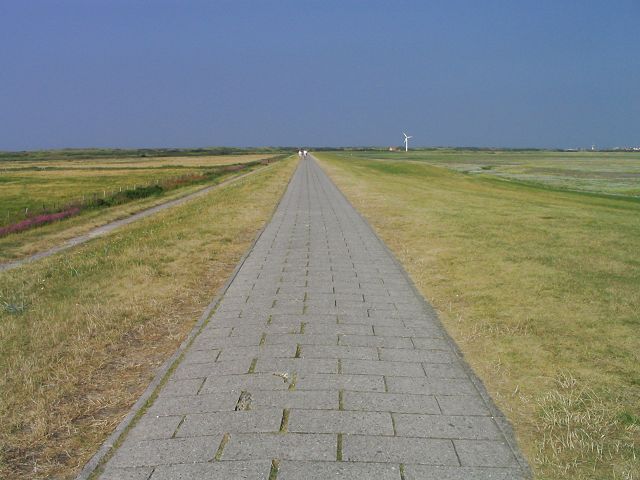 Auf diesem Deich können Sie bis ins Dorf laufen (ca. 4 Kilometer).