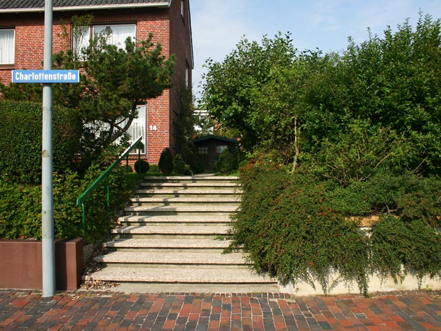 Wie uns das Straßenschild verrät, befinden wir uns nun in der »Charlottenstraße«.
