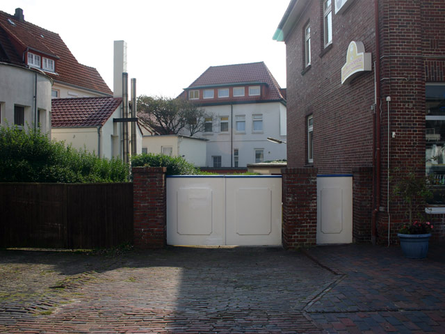Die Einfahrt zum Hinterhof des Lottoladens befindet sich genau vor uns.