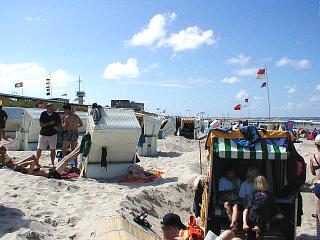 Zahlreiche Strandkörbe laden zu einem gemütlichen Strandnachmittag ein.