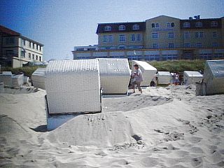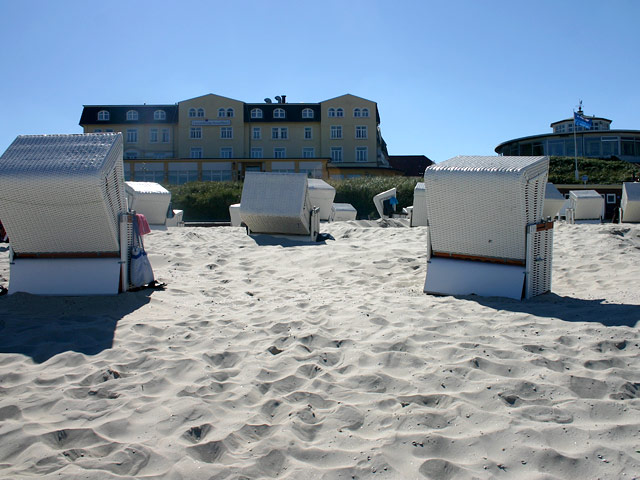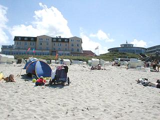 Geradeaus sehen Sie das Strandhotel »Upstalsboom«,