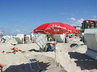 Ein Meer von weißen Strandkörben, denn eine andere Korbfarbe ist hier nicht anzutreffen.