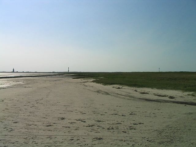 Wir blicken gerade nach Westen, über das Watt zum Westdorf hin.