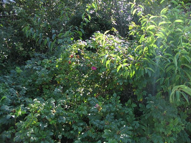 Hier sehen wir die Kartoffel- oder Heckenrose.